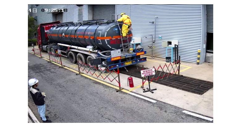 槽車到位后識(shí)別圍籬、滅火器、警示標(biāo)識(shí)、人員著裝規(guī)范等。